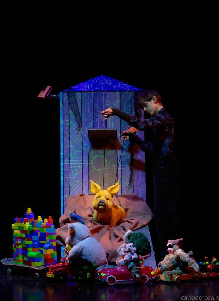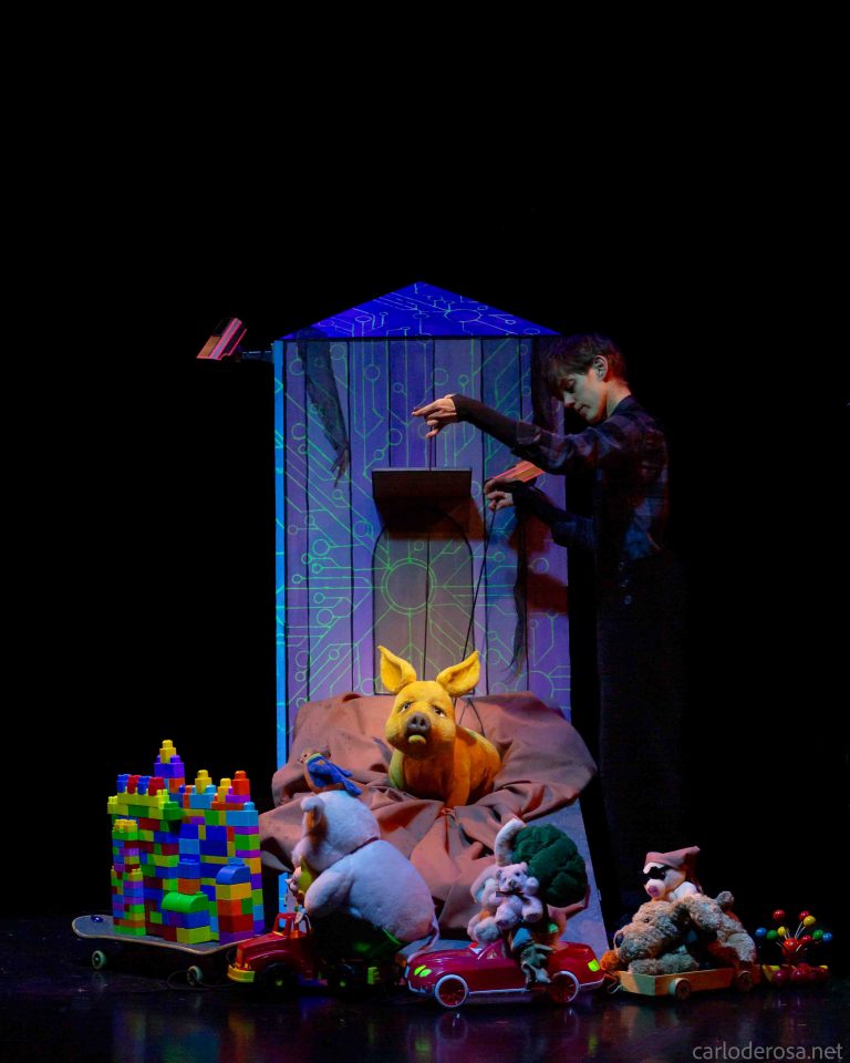 Ce spectacle pour les enfants dès 5 ans aborde les sujets de « l’espace à soi », de l’impact de la technologie sur nos vies et… de la saleté! Trois actrices-marionnettistes pétillantes et agiles animent masques et grandes marionnettes. Cette réécriture du célèbre livre d’Arnold Lobel se colore d’une touche féminine et d’un zeste de folie cybernétique.
